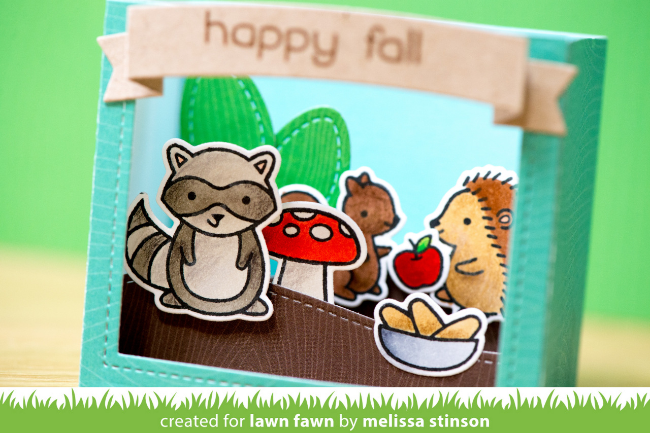 The stamps used here are from the new Forest Feast set. The tree and hill dies in the scene are actually part of the Shadow Box die set!